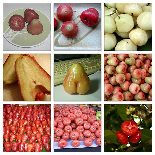 2.蓮霧:蓮霧原產于馬來半島,目前國內臺灣、海南、廣東、廣西、福建南部也有栽培。顏色繽紛多彩,有深紅色、粉紅色、深紅帶黑(黑鉆石、黑珍珠)、白色、青綠色等等。